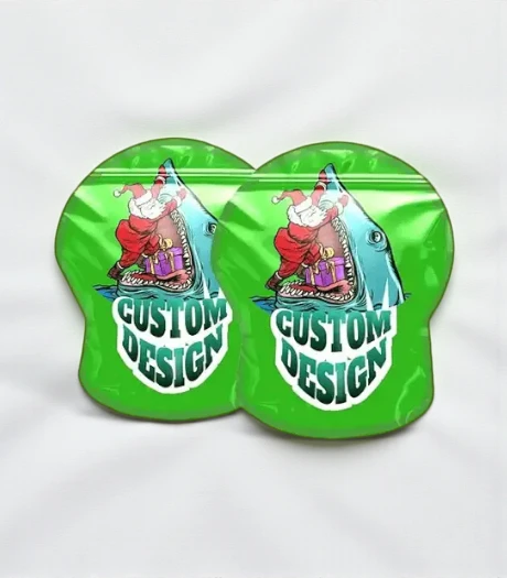 Die cut mylar bags from SMB combine style and strength for standout product presentation. These custom-shaped bags are made from thick, protective Mylar that seals out moisture, air & odor. The die-cut design allows unique shapes or handles for better branding and easy carrying.